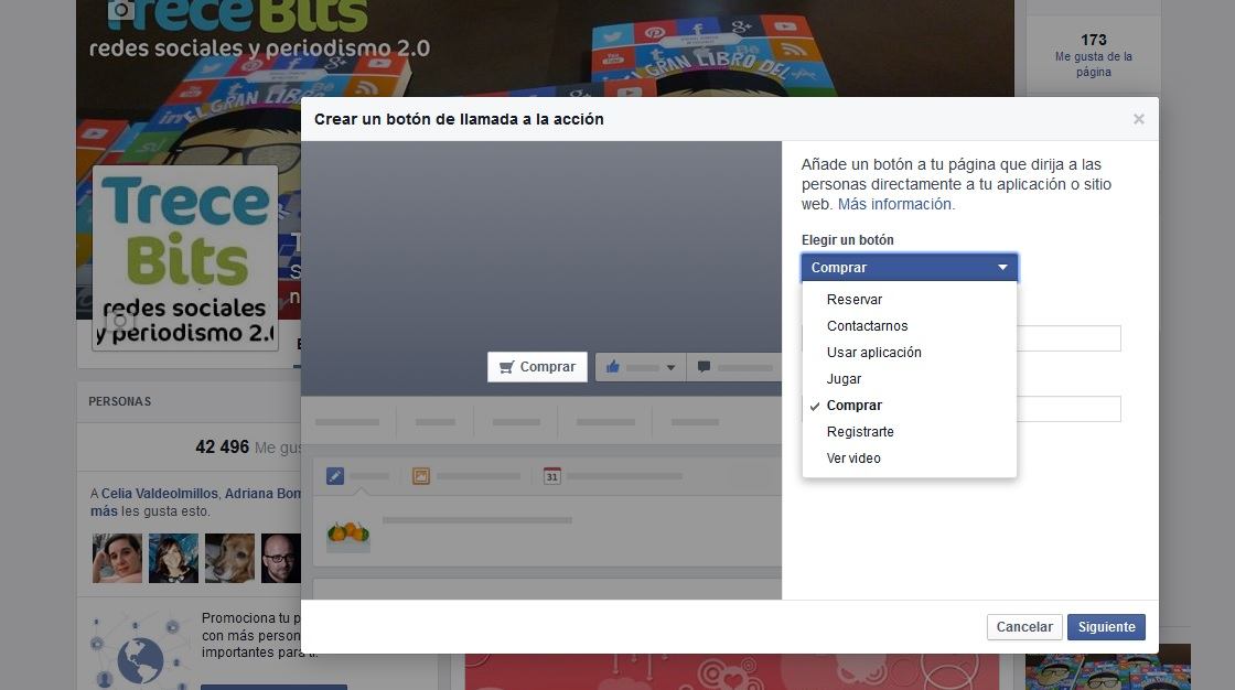 Puedes seleccionar cualquiera de los mencionados botones y elegir a qué URL redigirá. Pensemos que gestionas la página corporativa de un hotel. Si insertas el botón «reservar» y en el enlace diriges a la página web de reservas online de tu hotel o de tu cadena hotelera, estarás obteniendo posiblemente más clientes y dar un valor añadido a tu Página en Facebook.